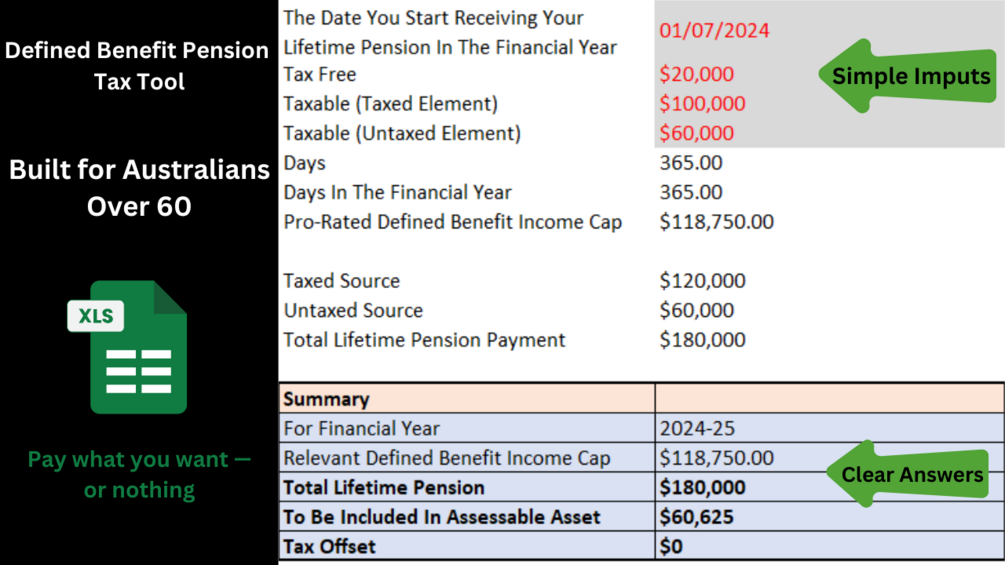 Built for Australians Over 60 – Tailored to the specific tax rules for defined benefit pensions after age 60.